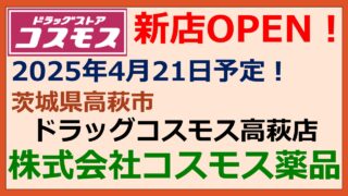 ドラッグストア しまむら ⻘森中央店(リニューアル)の開店オープン日 この記事は、茨城県高萩市大字安良川字浜野 267 番 69に2025年4月21日OPEN予定のドラッグコスモス高萩店について書かれています。 2025.02.28 ドラッグストア